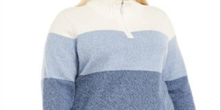 Karen Scott Women's Kathleen Striped Cotton 1/4 Zip Sweater Blue Size 3X