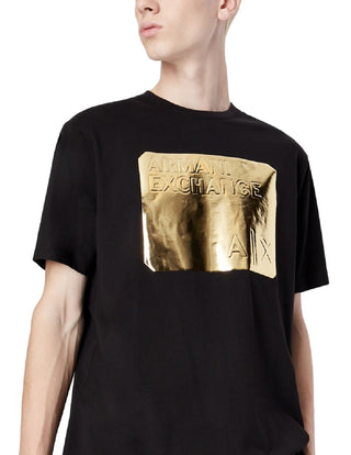 A|X Armani Exchange Men's Metallic Embossed Logo Graphic T-Shirt Black Size Large