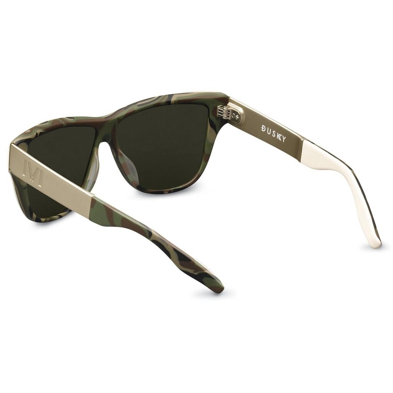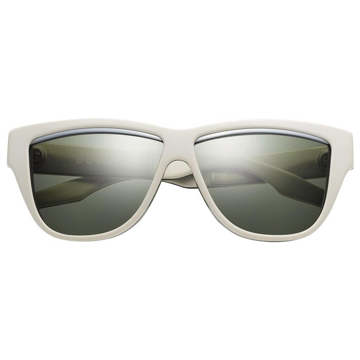 Blending fashion and practicality, these stylish shades are chic and mandatory. Stand out from the crowd and safeguard your vision with these stand-out sunglasses.Be the center of obsession! Dusky features a slim, playful cat eye shape that has a subtle, but alluring polished metal trim just above the lens. Its attractive silhouette catches the eye and demands investigation. So when people stare, Dusky gives them something talk about. COLOR: POLISHED IVORY - DPM - BRUSHED ALUMINUM / GREEN GREY LENS