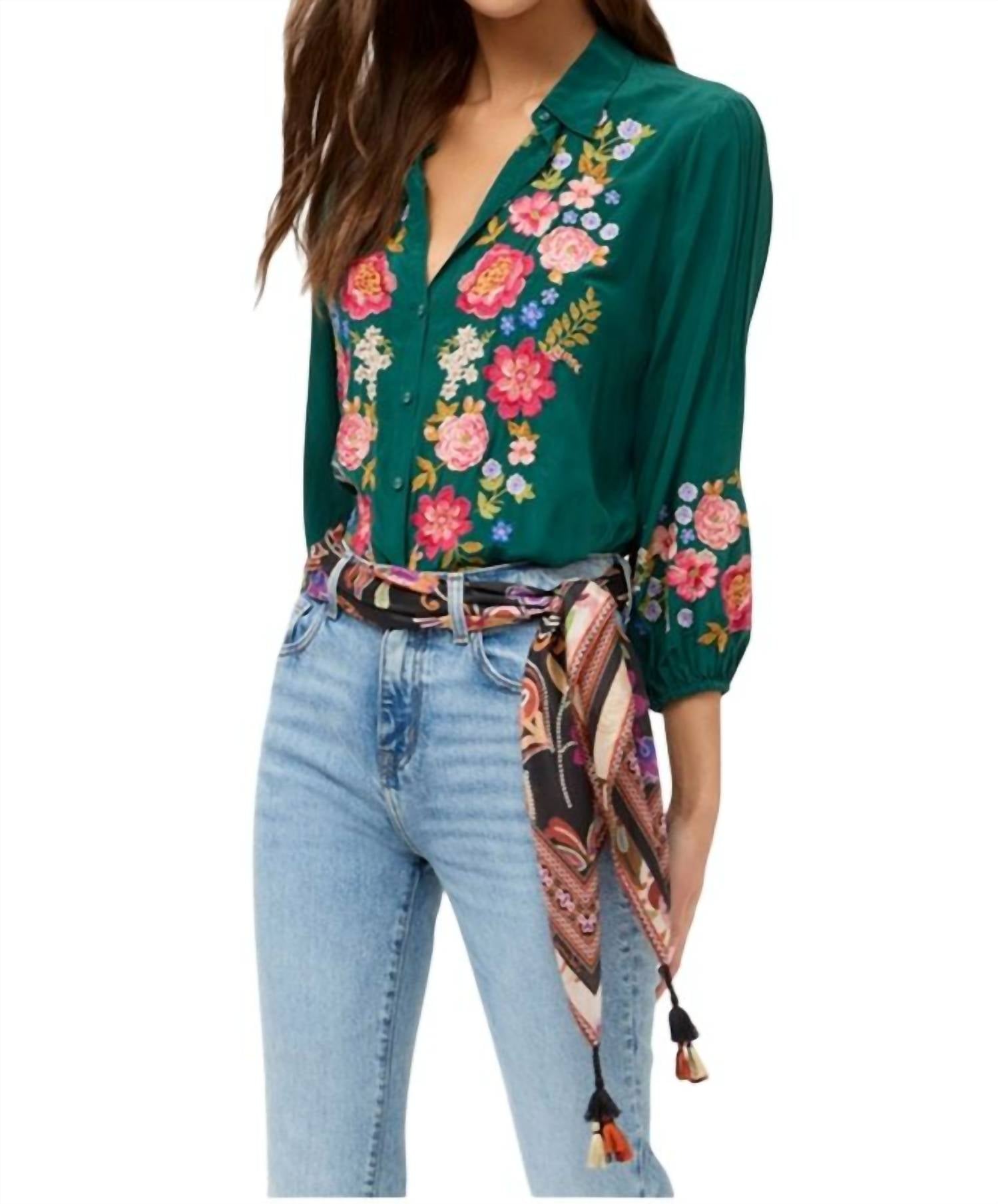 The perfect accessory to complete any look. Crafted by Johnny Was, the Women's Maxima Silk Scarf is a luxurious accessory made from 100% silk, featuring a vibrant floral multi-color design. The scarf measures 44" x 44" and is perfect for adding a pop of color to any outfit. Bordered with monochromatic accents and eye-catching patterns, it offers versatility whether worn over your hair or tied at the neck. Care instructions include hand washing in cold water, hanging to dry, and avoiding bleach and ironing.
