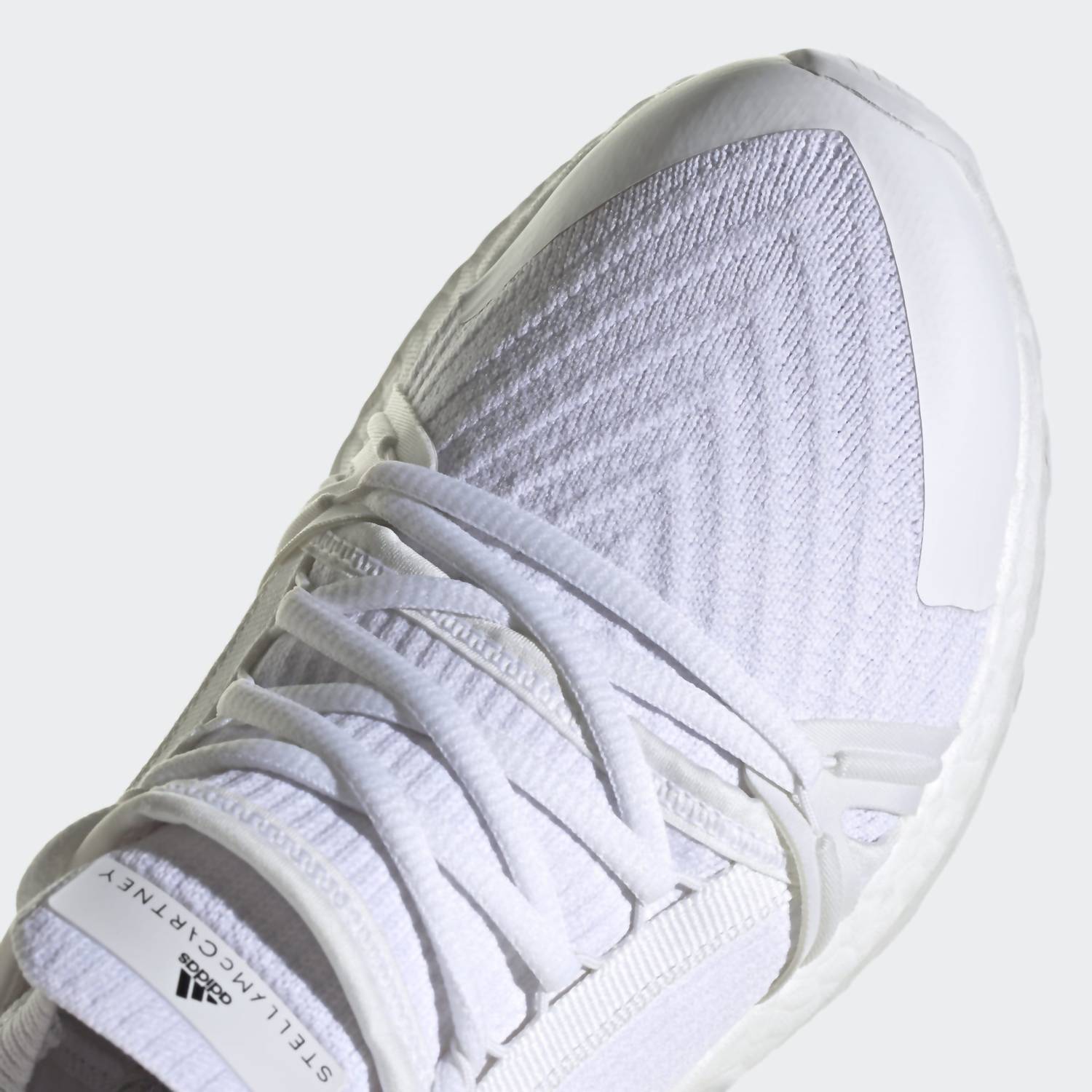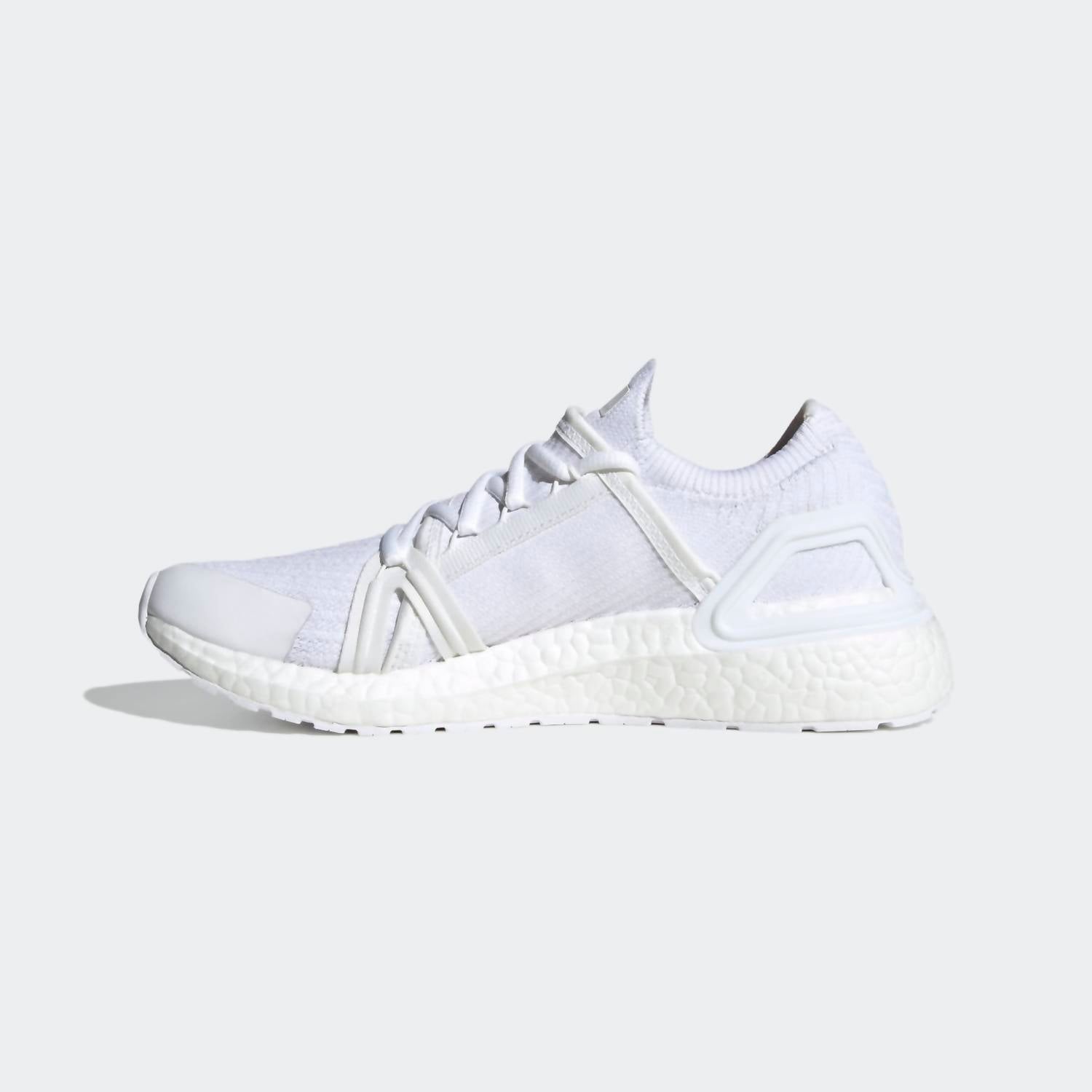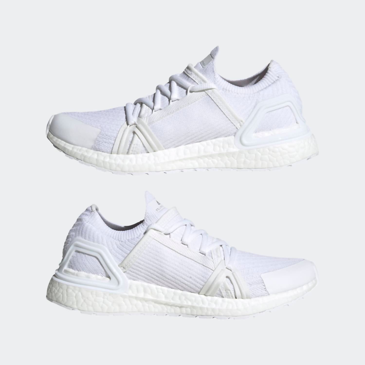 When fashion and function come together seamlessly. Step up your running game with the Women's Ultraboost 20 Sneaker by adidas, blending comfort and style effortlessly. Designed in Cloud White/cloud White/core Black, this athleisure trend sneaker features a lace closure and adidas PRIMEKNIT textile upper for a snug fit, complemented by a BOOST midsole and Continental™ Rubber outsole for superior traction. These vegan alternative shoes proudly display the adidas by Stella McCartney logo, offering both sustainability and performance. Ideal for summer, these sneakers ensure you're ready for any adventure with a touch of eco-friendly sophistication.