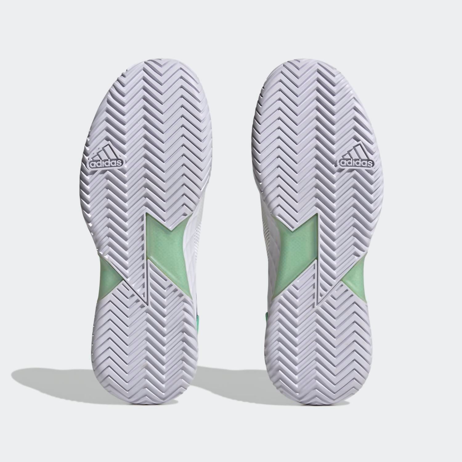 Step onto the court with confidence in the Women's Adizero Ubersonic 4 Shoes by adidas, designed for agile play with style and performance in mind. These athletic shoes feature a snug engineered mesh upper crafted from recycled material, offering targeted support and ventilation. The Adiwear hard court outsole with a herringbone profile ensures balanced traction and durability, complemented by adidas's Lightstrike cushioning for enhanced speed. Finished in Cloud White, Violet Fusion, and Silver Metallic, these shoes promise next-level comfort and style.