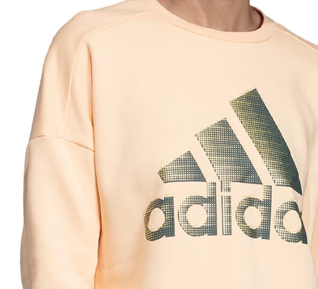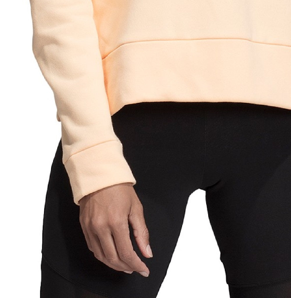 INSPIRED FOR: Athleisure | Fleece | Ribbed crewneck; long sleeves with drop shoulders, ribbed cuffs; ribbed hem with vents at sides; pleats at back; shiny logo at fron