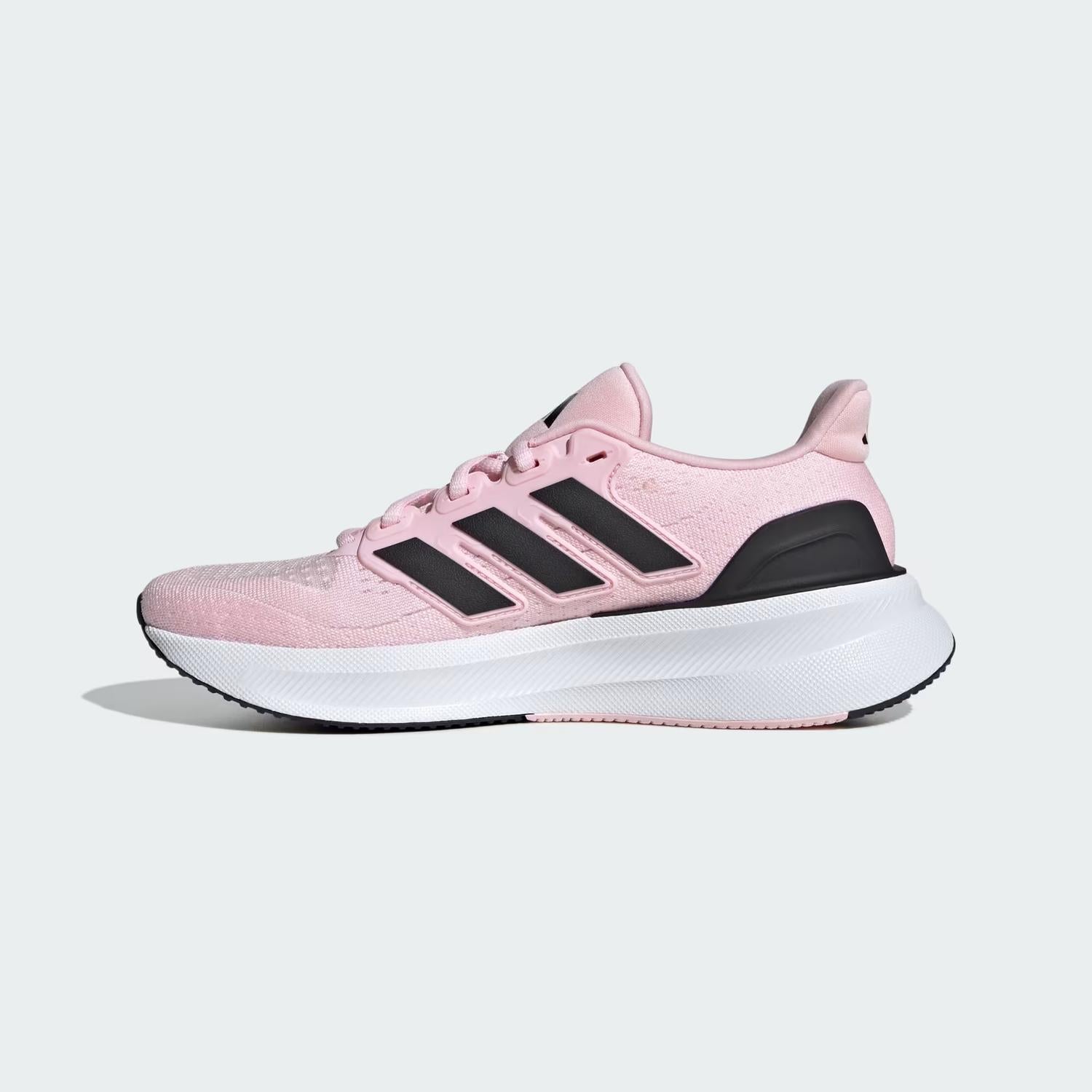 Workout in style with these adorable athletic sneakers. Step into comfort with the Women's Ultrarun 5 W Running Shoe by adidas, designed in a chic Clear Pink/Black/White palette. Featuring a breathable mesh upper and textile lining, this shoe offers a snug, regular fit with a lace closure and a round toe shape. Enjoy enhanced performance with the Bounce 2.0 and Cloudfoam midsole cushioning, complemented by an OrthoLite® sockliner. The Adiwear outsole ensures long-lasting durability, while at least 20% of recycled materials make it a sustainable choice. Weighing 275 g with a midsole drop of 10 mm, this shoe offers both style and responsible manufacturing.