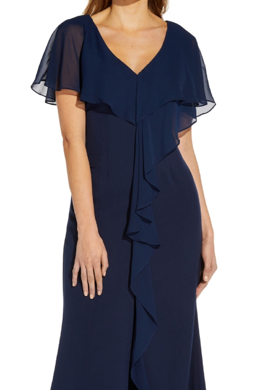 Adrianna Papell Women's Chiffon Overlay Crepe Mermaid Gown Blue Size 2