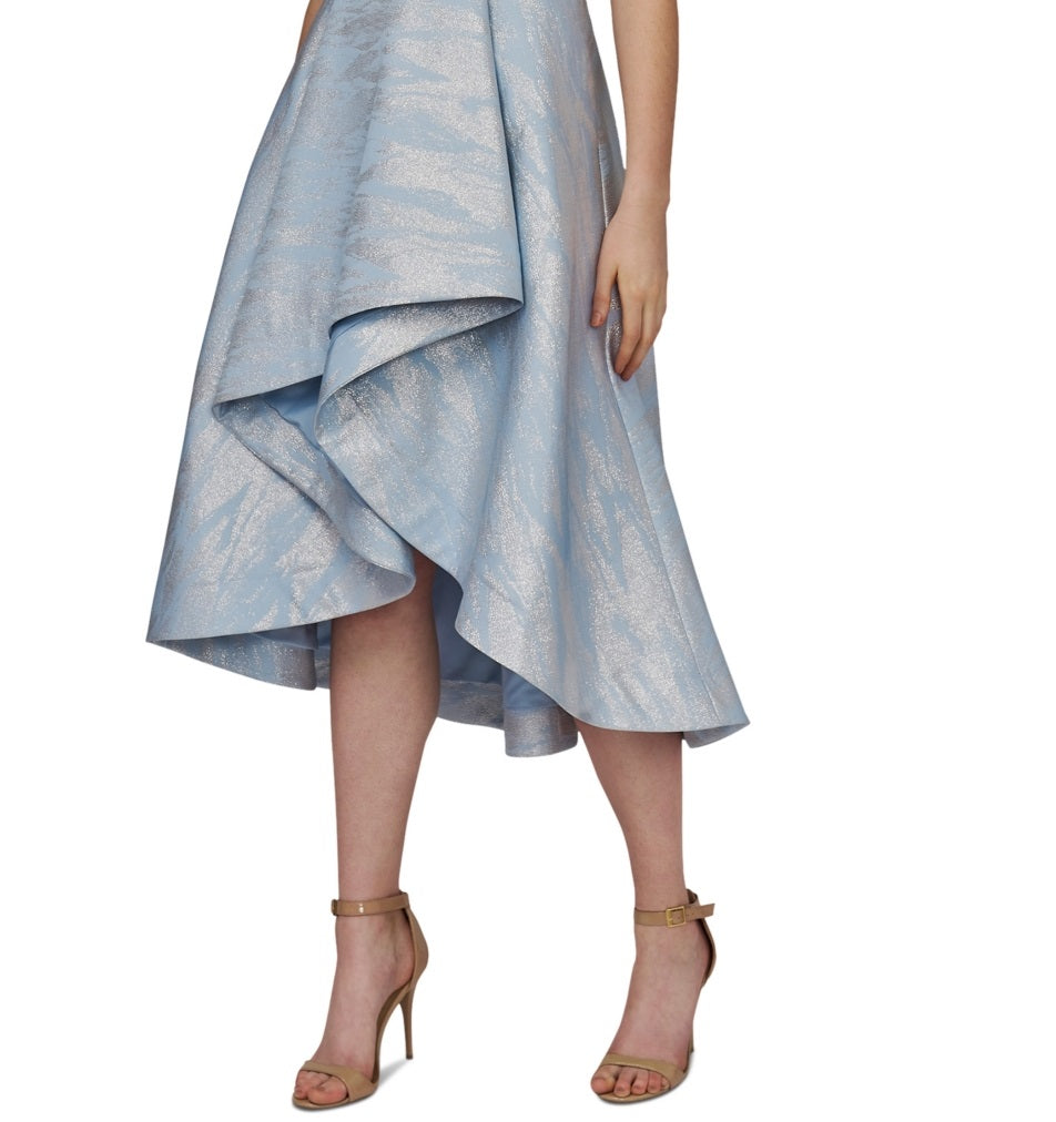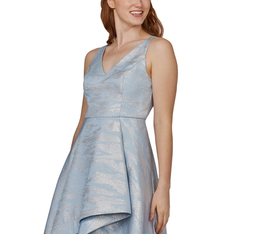 A flowing high-low hem plays around your legs in this gorgeous petite fit & flare dress from Adrianna Papell| ornamented with light-catching metallic threading