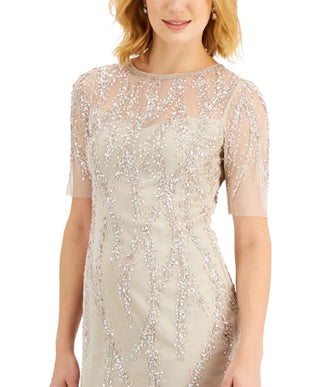 Adrianna Papell Women's Sequin Elbow Sleeve Dress Beige Size 0