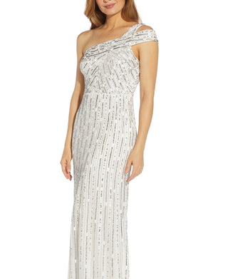 Adrianna Papell Women's One Shoulder Beaded Gown White Size 4