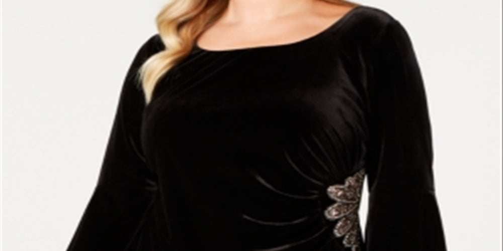 Brilliant bead embellishments define the side waist of this plus size top from Alex Evenings| styled in beautiful velvet with 3/4-sleeves for added coverage.| Hits at hip| Round neckline| Allover velvet; beaded detail at side waist| 3/4-sleeves