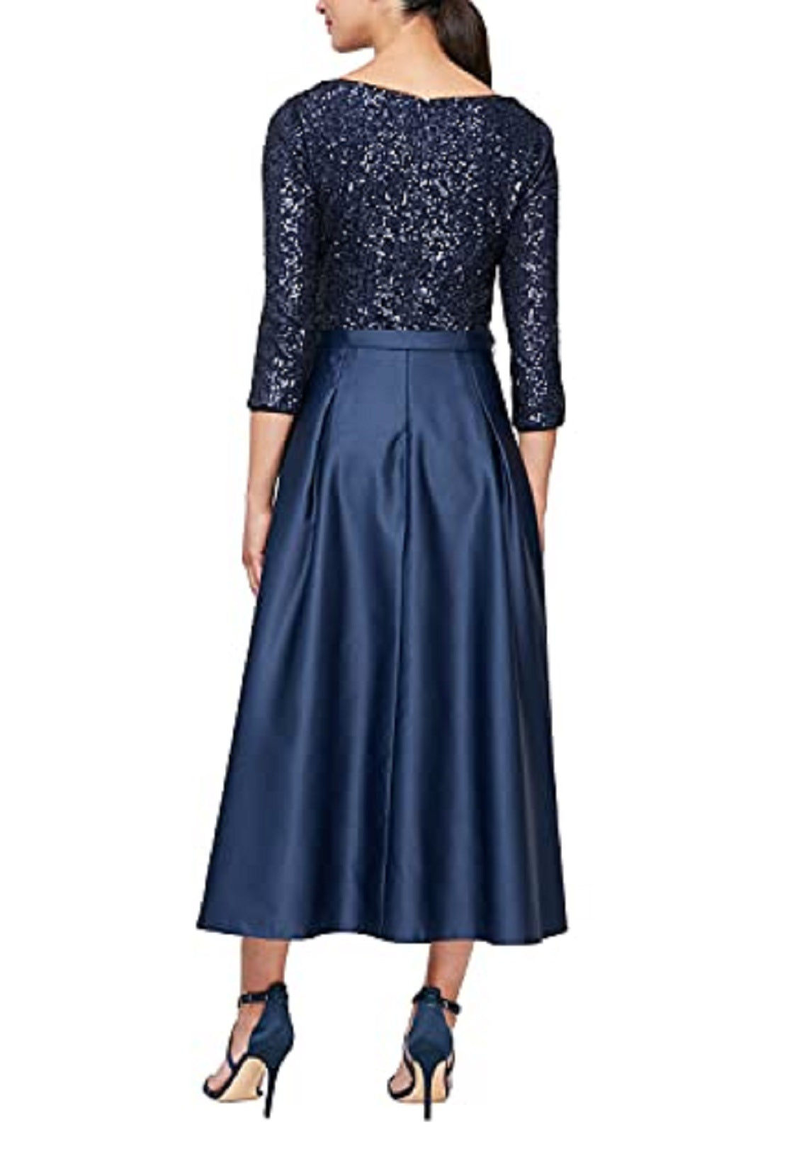 Alex Evenings Women's Sequined Bodice Midi Dress Blue Size 14