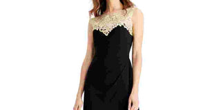 Alex Evenings Women's Sleeveless Illusion Neckline Maxi Sheath Cocktail Dress Black Size 14