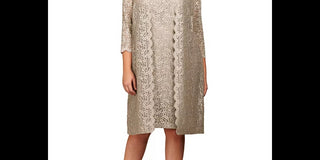 Alex Evenings Women's Shimmering 3/4 Sleeve Scoop Neck Above The Knee Sheath Cocktail Dress Size Square 18