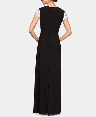 Alex Evenings Women's Short Sleeve Full Length Dress Black Size 14