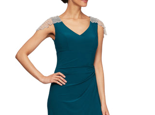 Alex Evenings Women's Teal Sleeveless Full Length Fit Flare Dress Green Size 14