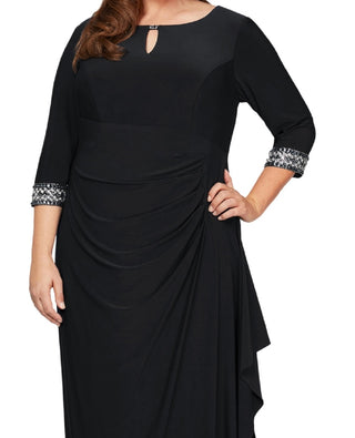 Alex Evenings Women's Embellished Faux Wrap Gown Black Size 18W