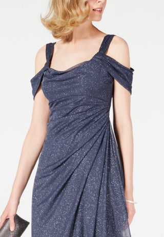 Alex Evenings Women's Cold Shoulder Ruffle Glitter Gown Gray Size 14 Petite