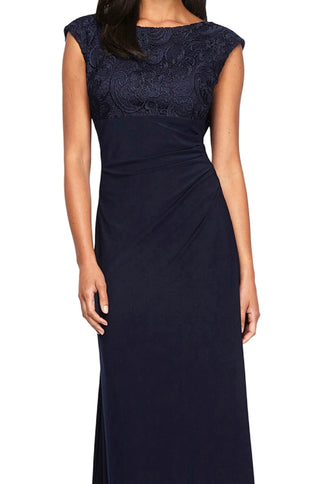 Alex Evenings Women's Brocade Bodice Empire Waist Gown Blue Size 10