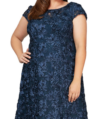 Alex Evenings Women's Sequin Lace Cocktail Dress Blue Size 16W