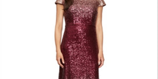 Alex Evenings Women's Sequined Ombre Cap Sleeve Jewel Neck Full Length A Line Formal Dress Red Size 10