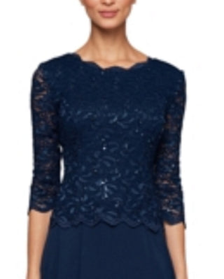 Alex Evenings Women's Sequin Lace & Chiffon Gown Blue Size 16