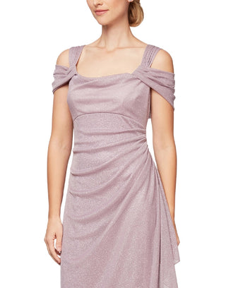 Alex Evenings Women's Cold Shoulder Draped Metallic Gown Pink Size 8Petite
