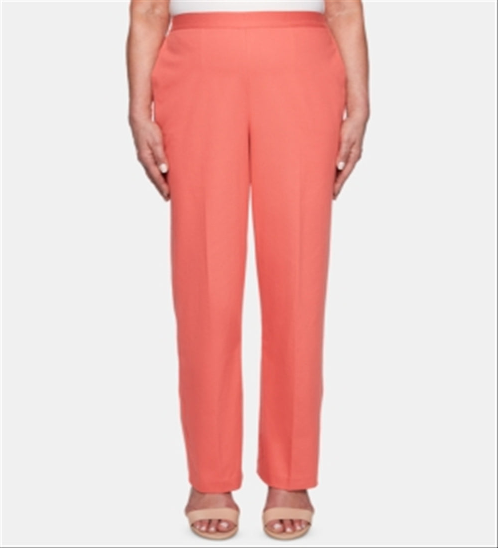 Pants by Alfred Dunner| Comes in Coral| Size 12P| Refined in stretch twill with a classic fit and front creases| Slant pockets| straight legs| Woven cotton/polyester/spandex