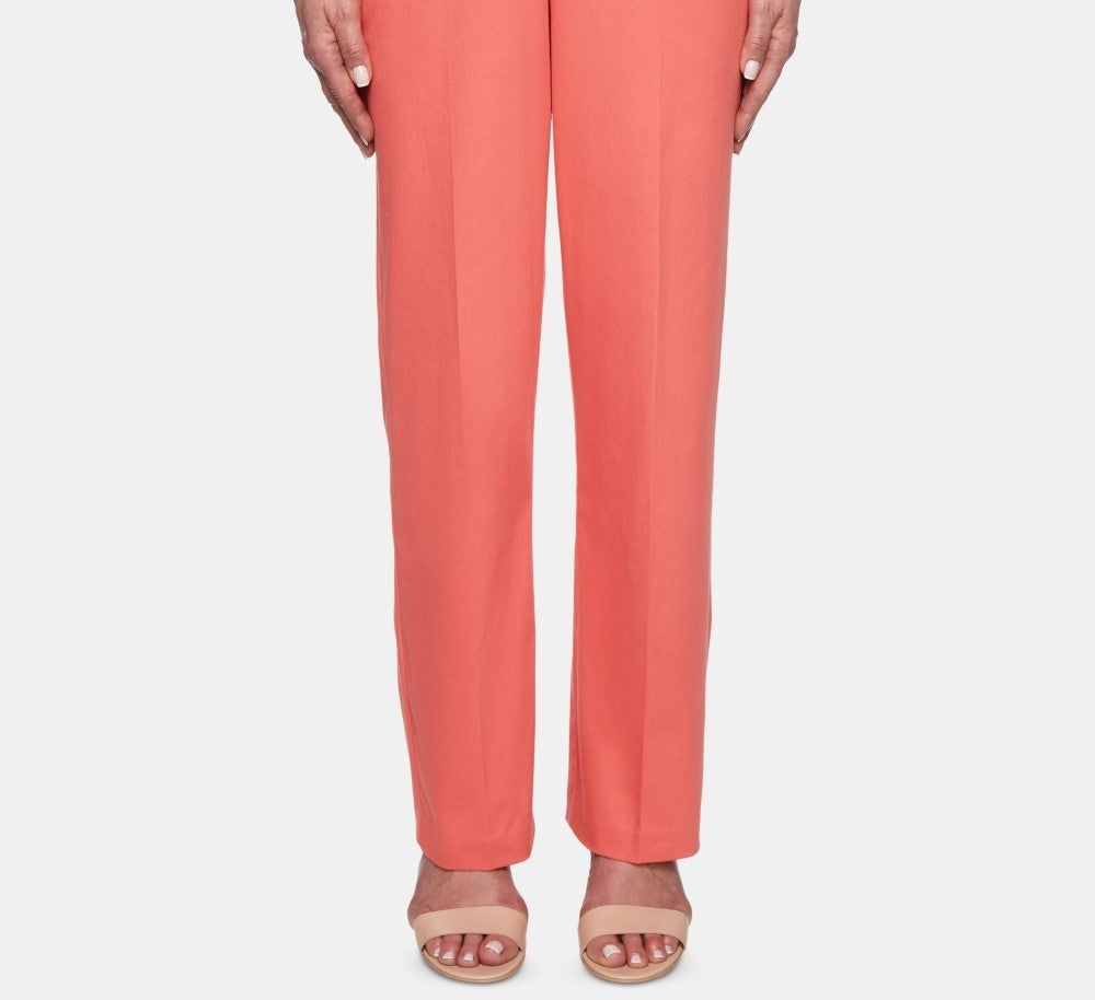 Approx. inseam; 28-1/2|Rise; approx. 9-1/4; relaxed fit through hips and thighs; straight leg|Designed to fit and flatter 5'4 and under frame|Pull-on style|Side-seam pockets|Cotton/polyester/spandex