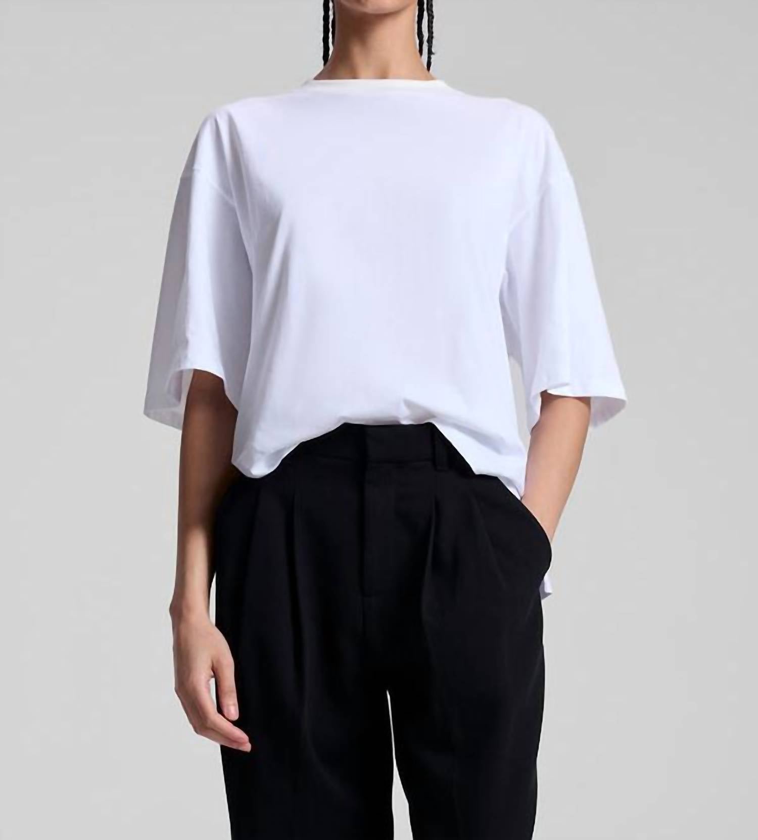 The Albie Short Sleeve Tee by A.L.C. is your go-to choice for a chic, preppy look. Crafted from 100% breathable cotton, this tee comes in a solid white color, perfect for summer vacations and holiday gatherings like the 4th of July. It features a classic crewneck and a convenient pull-on closure. Care instructions are simple: machine wash and line dry.