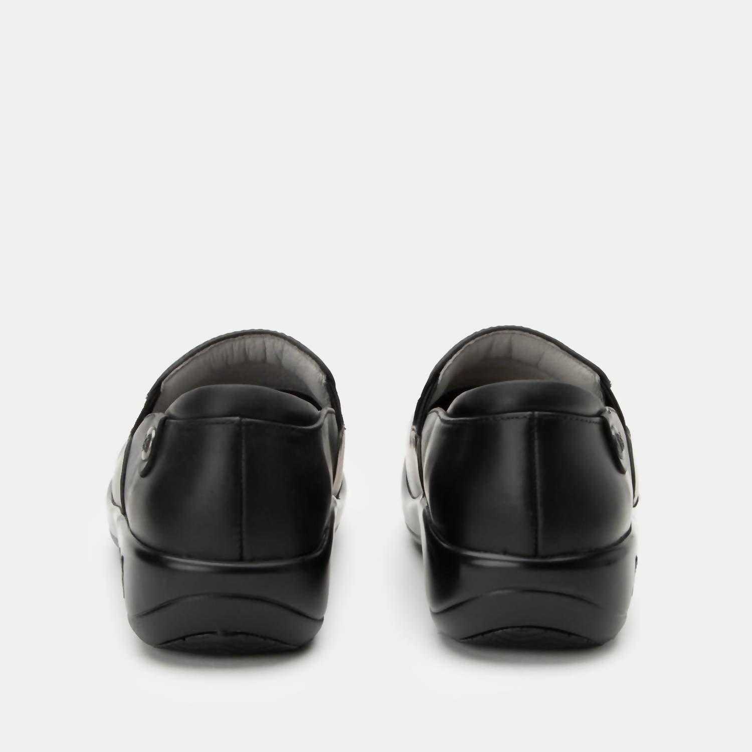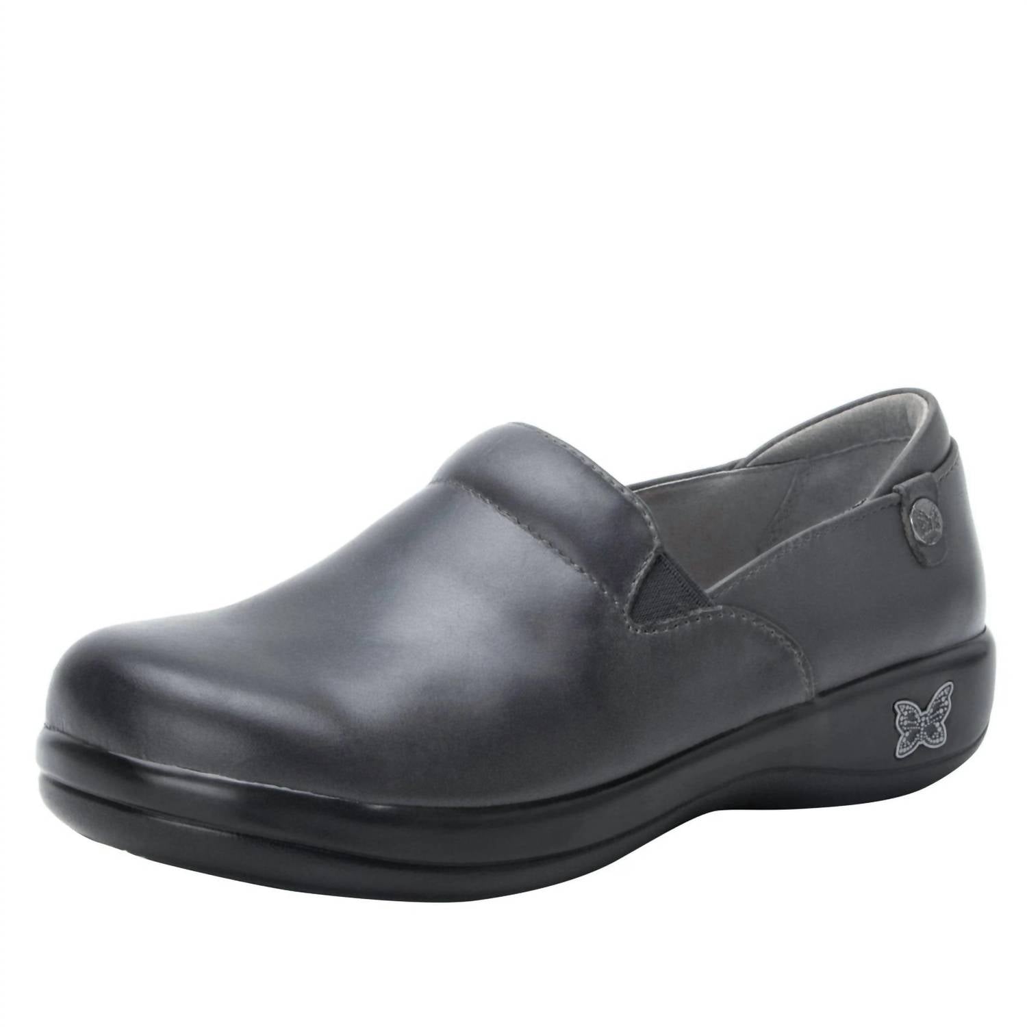 These professional slip-on shoes combine all-day comfort with polished style. Made from soft oiled leather, they feature elastic side panels for easy on and off, gentle padding, a rounded toe, and a removable memory foam and cork footbed for extra cushioning. The slip-resistant sole provides reliable support for long days on your feet.