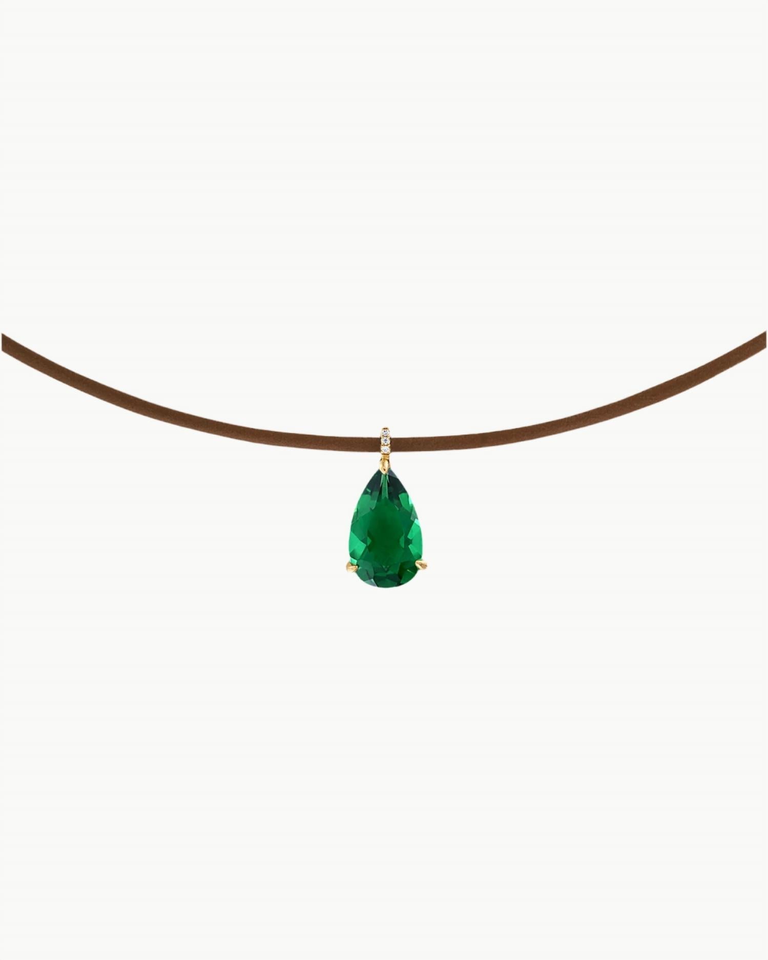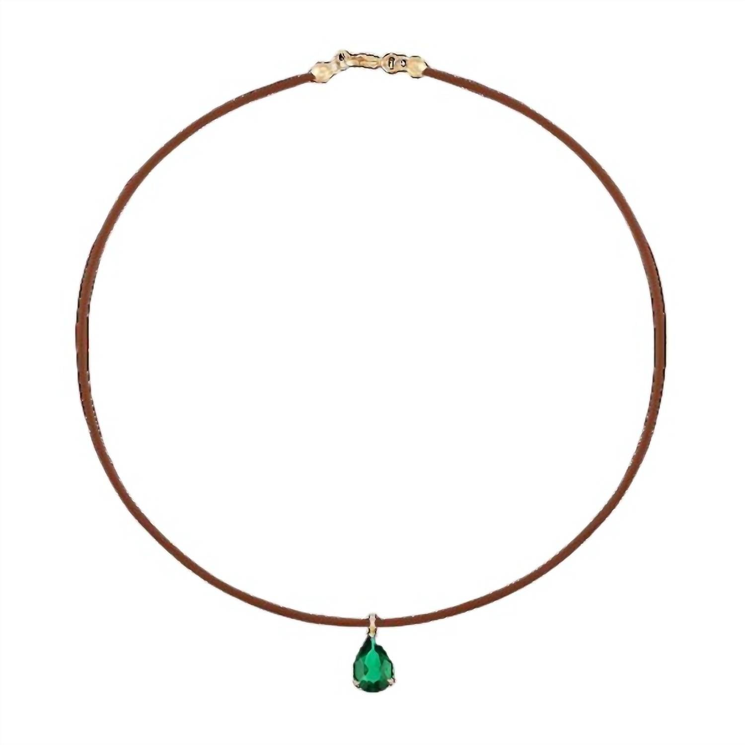 The perfect stand-out necklace that complements even the most basic t-shirt. Discover the Women's Resilience Necklace by Alexa Leigh, a perfect blend of durability and elegance for fashion-forward women. Featuring a brown rubber necklace with a vermeil yellow gold imitation emerald pear pendant, this piece will seamlessly complement any outfit. Made with gold plating and secured with a lobster clasp closure, it promises both style and practicality for everyday wear. This necklace embodies resilience and style, crafted to meet the demands of modern life.