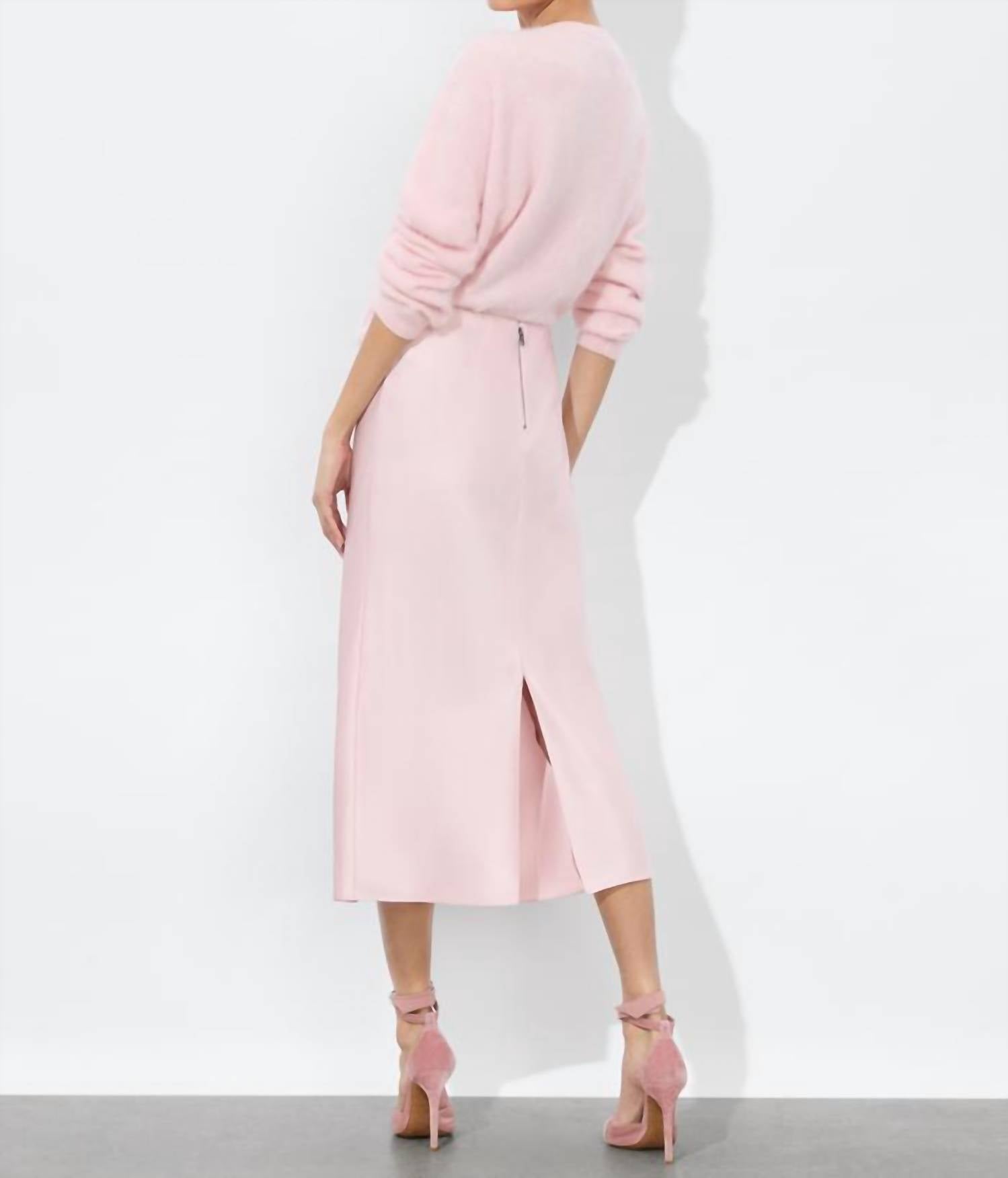 The midi length skirt is here to stay and we especially love this style. Introducing the Maeve Midlength Midi Slip Skirt by alice + olivia, an elegant piece in Shell Pink perfect for any summer occasion. Crafted from 100% polyester, this solid-patterned skirt offers a sophisticated touch to your workwear wardrobe. Designed with a convenient zip closure, it ensures both style and functionality. Care for this stunning piece by following the dry clean instructions.