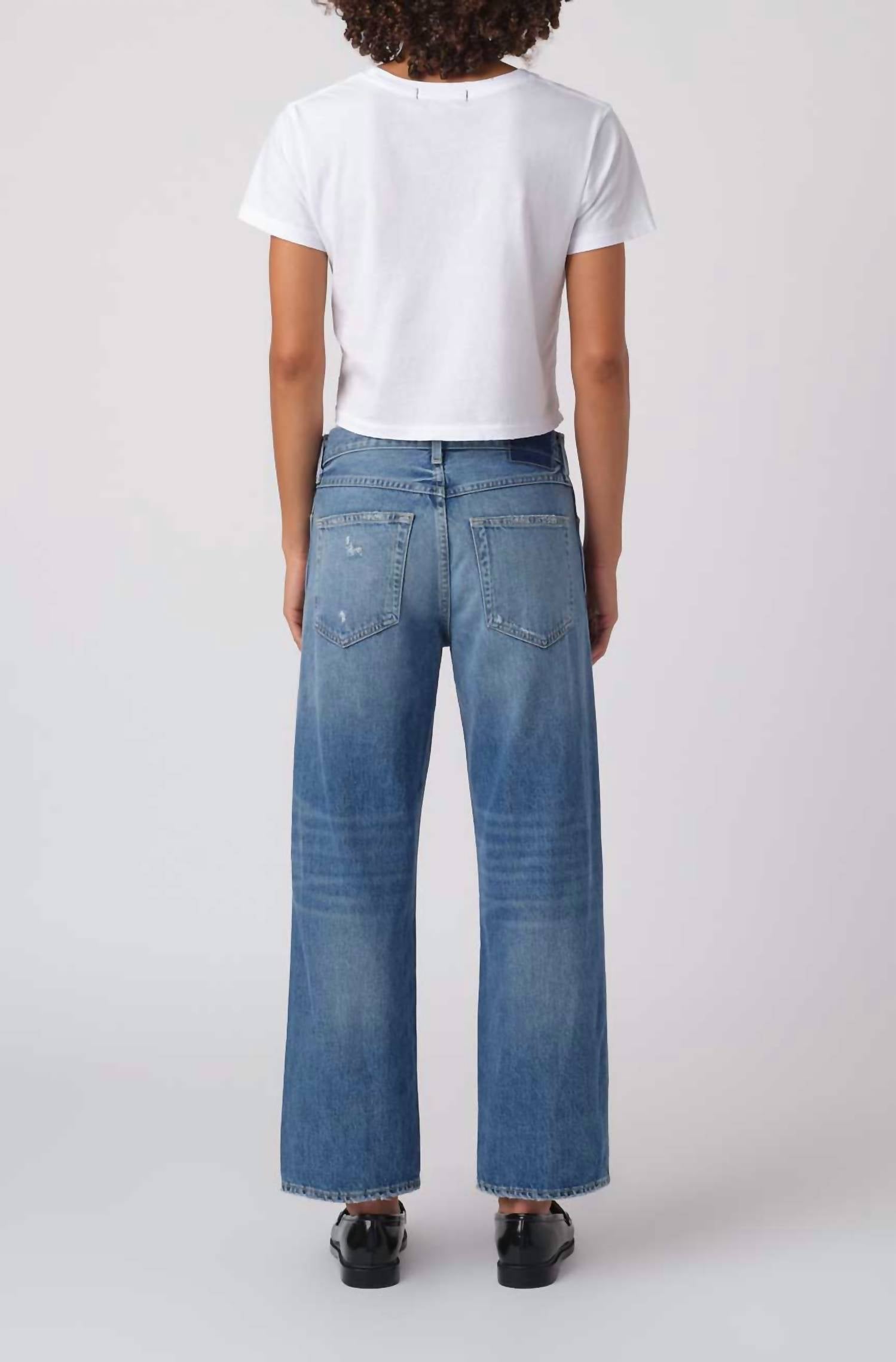 Pair these straight leg jeans with flats, sandals or even heels! You can't go wrong. Meet the Billie Jeans by AMO, the perfect blend of style and ease with its relaxed, straight-leg fit in a trendy medium wash. Crafted from 100% Cotton, these jeans sit mid-rise with dimensions that include a front rise of 10.75 inches and inseam of 26.5 inches. Designed in Los Angeles, they feature thoughtful distressing and a button closure for a modern touch. For care, machine wash cold and tumble dry on low heat to maintain their timeless appeal.