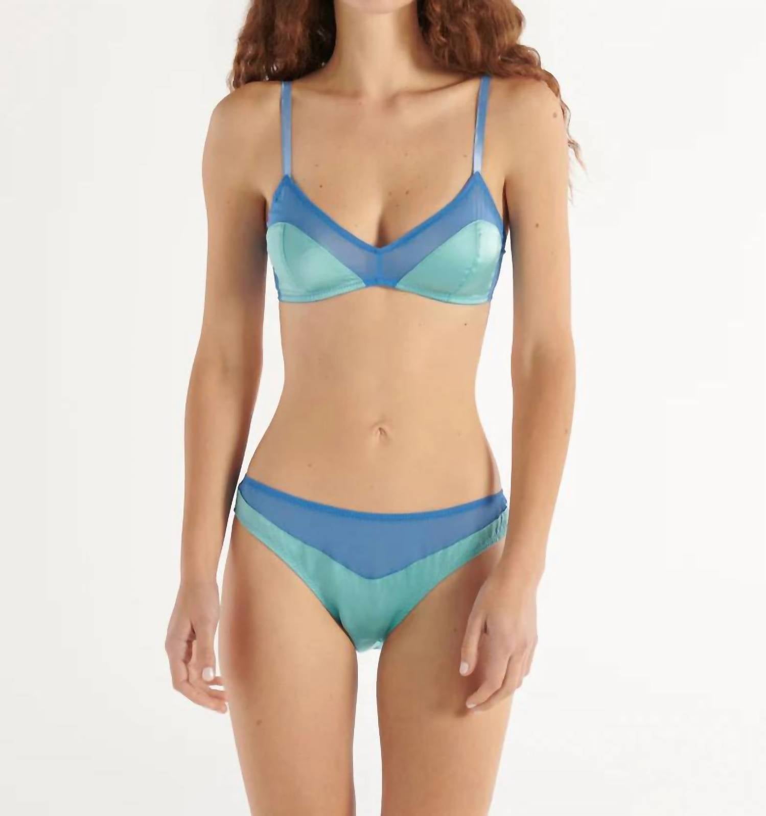 Some say your first layer is the most important. We agree. Discover the Aaron Panty by Araks, designed for the modern woman who values both comfort and style. This mid-rise panty offers classic coverage and is crafted from a luxurious silk blend with 92% silk and 8% elastane. Combining shiny opaque silk charmeuse with sheer silk chiffon, it comes in a sophisticated Peekaboo Blue. Proudly made in the USA, it is perfect for minimalist summer styles and requires hand washing and line drying.