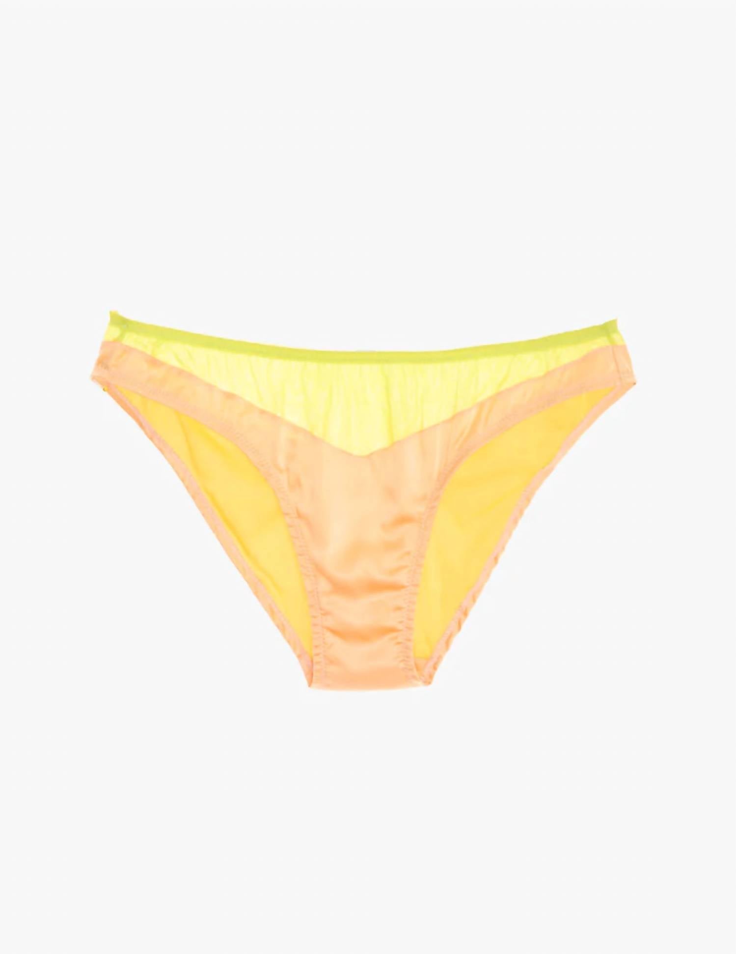 Some say your first layer is the most important. We agree. Discover the Aaron Panty by Araks, designed for the modern woman who values both comfort and style. This mid-rise panty offers classic coverage and is crafted from a luxurious silk blend with 92% silk and 8% elastane. Combining shiny opaque silk charmeuse with sheer silk chiffon, it comes in a sophisticated Peekaboo Blue. Proudly made in the USA, it is perfect for minimalist summer styles and requires hand washing and line drying.