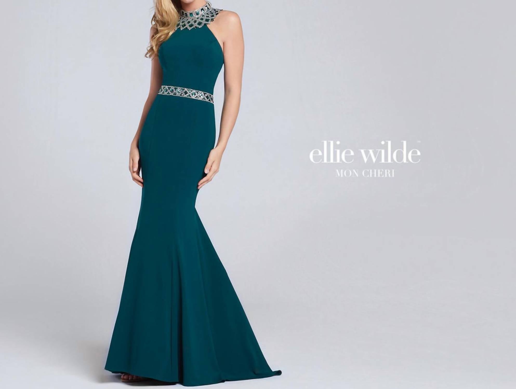 A maxi dress that is just as cute as it is comfortable. Introducing the Ellie Wilde Women's Prom Dress, a stunning choice for an unforgettable evening. This emerald mermaid silhouette maxi dress embodies the essence of quiet luxury with its sophisticated halter neckline and stylish sleeveless design. Closure: Zip closure. Perfectly tailored for a glamorous Spring prom occasion.