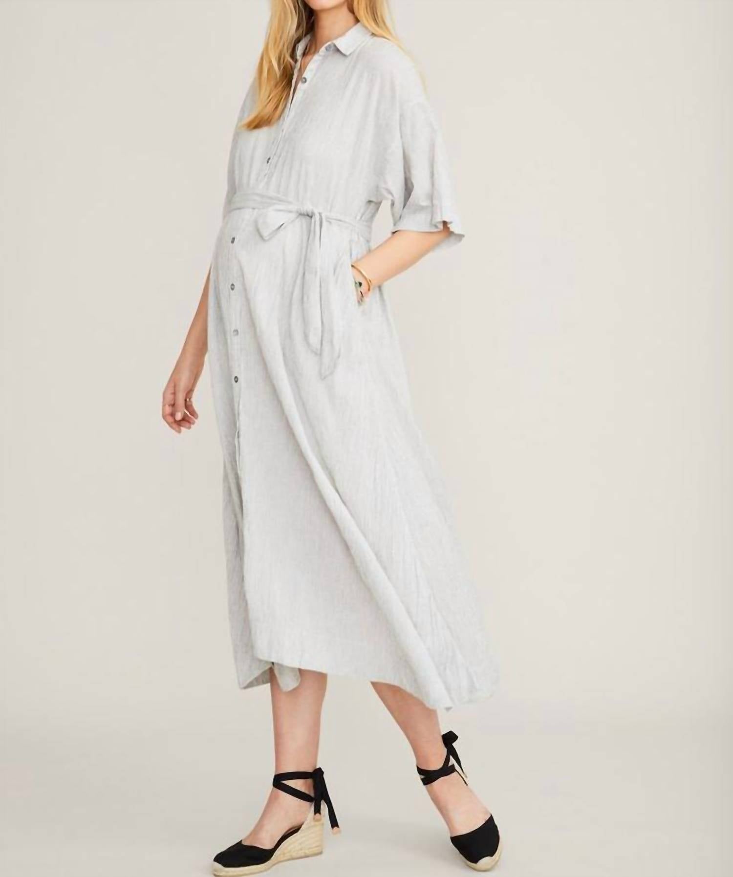Just add slides or mules and you are good to go. Introducing the Hatch Maternity Elsa Midi Dress in Navy Stripe, a charming piece for expectant mothers with its short kimono sleeves and playful A-line silhouette. Crafted from 100% cotton, this dress is perfect for spring occasions like a baby shower or Thanksgiving. The dress features a classic collared neckline and button closure, offering both versatility and style. Designed with convenience in mind, it is machine washable for effortless care.
