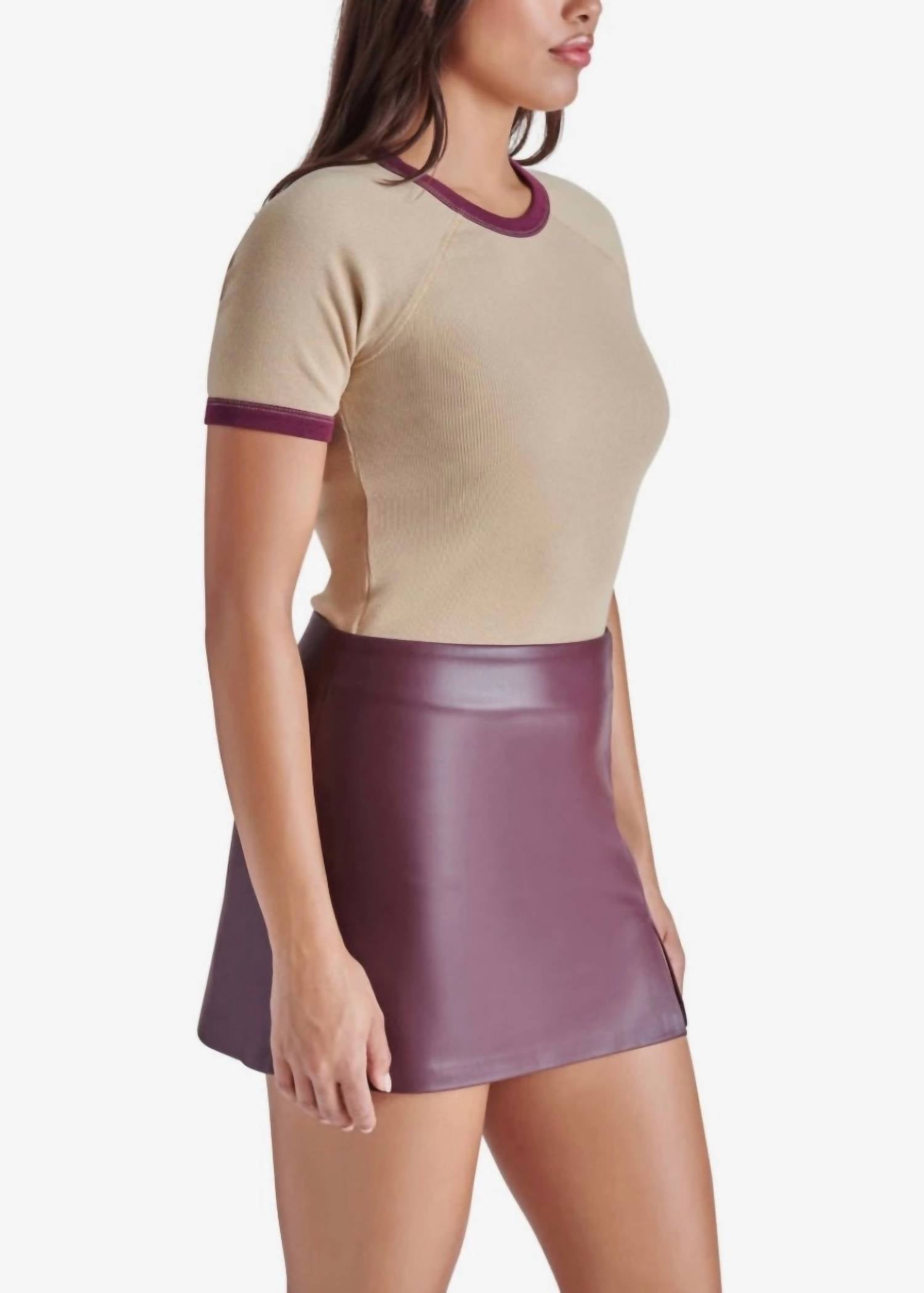 Introducing the Women's Darren Short Sleeve Bodysuit by Steve Madden in a chic New Taupe color. This bodysuit is made from a luxurious cotton blend composed of 96% cotton and 4% spandex, ensuring a comfortable and figure-hugging fit. Its simple solid pattern and crewneck design make it a versatile minimalist piece, perfect for any summer occasion. With a convenient snap closure and care instructions calling for hand washing and line drying, this bodysuit pairs wonderfully with any outfit for effortless style.