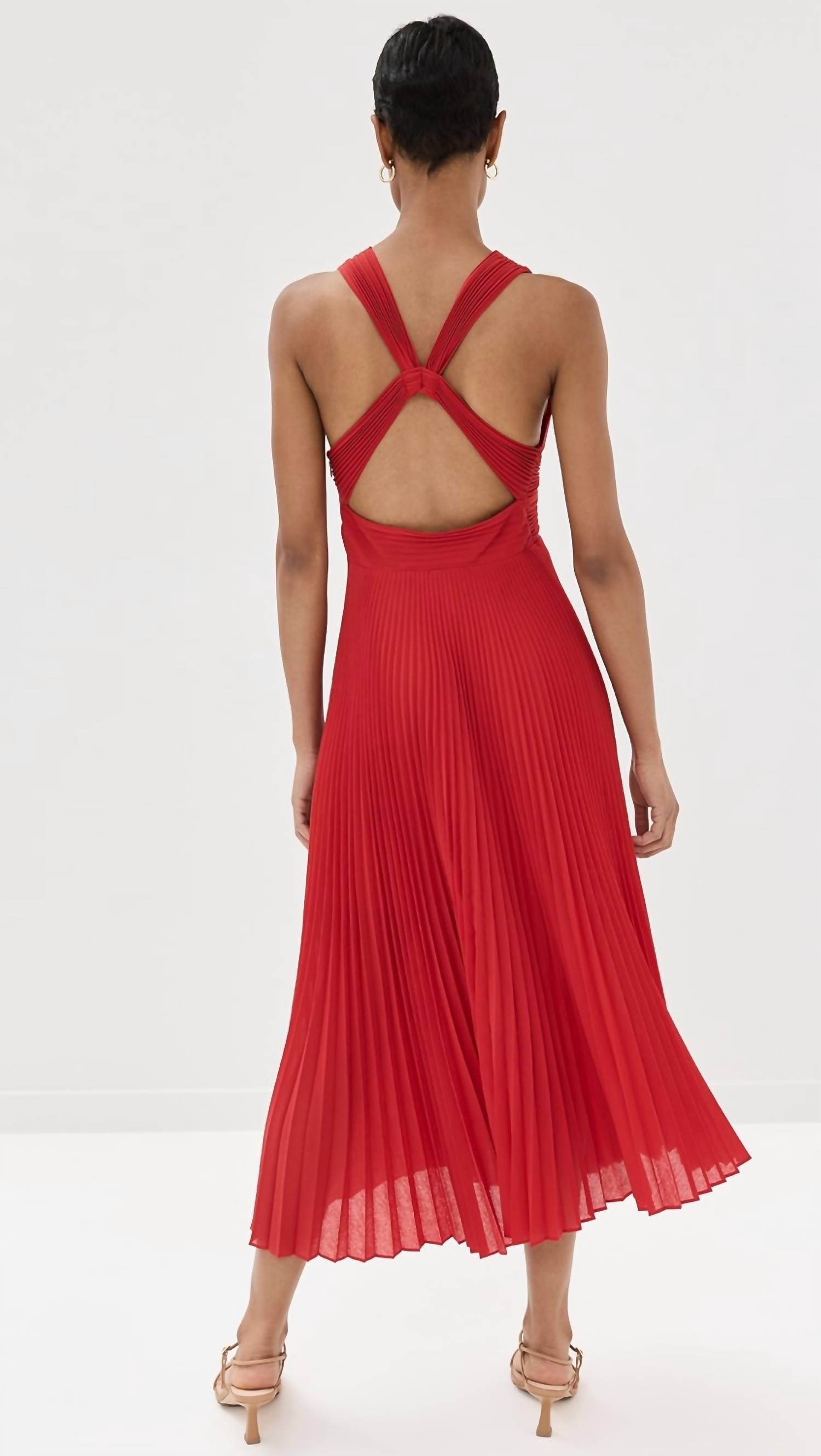 A midi dress so versatile, your options for wearing it are endless. Step into sophistication with the Everly Dress by A.L.C., a stunning choice in a vibrant rouge hue. This sleeveless empire waist dress features a plunging V-neckline, making it ideal for exciting evenings out. Crafted from high-quality polyester with a flattering midi length of 51.25 inches, it promises both comfort and style. Care: Dry clean only, ensuring your dress maintains its exquisite appearance.