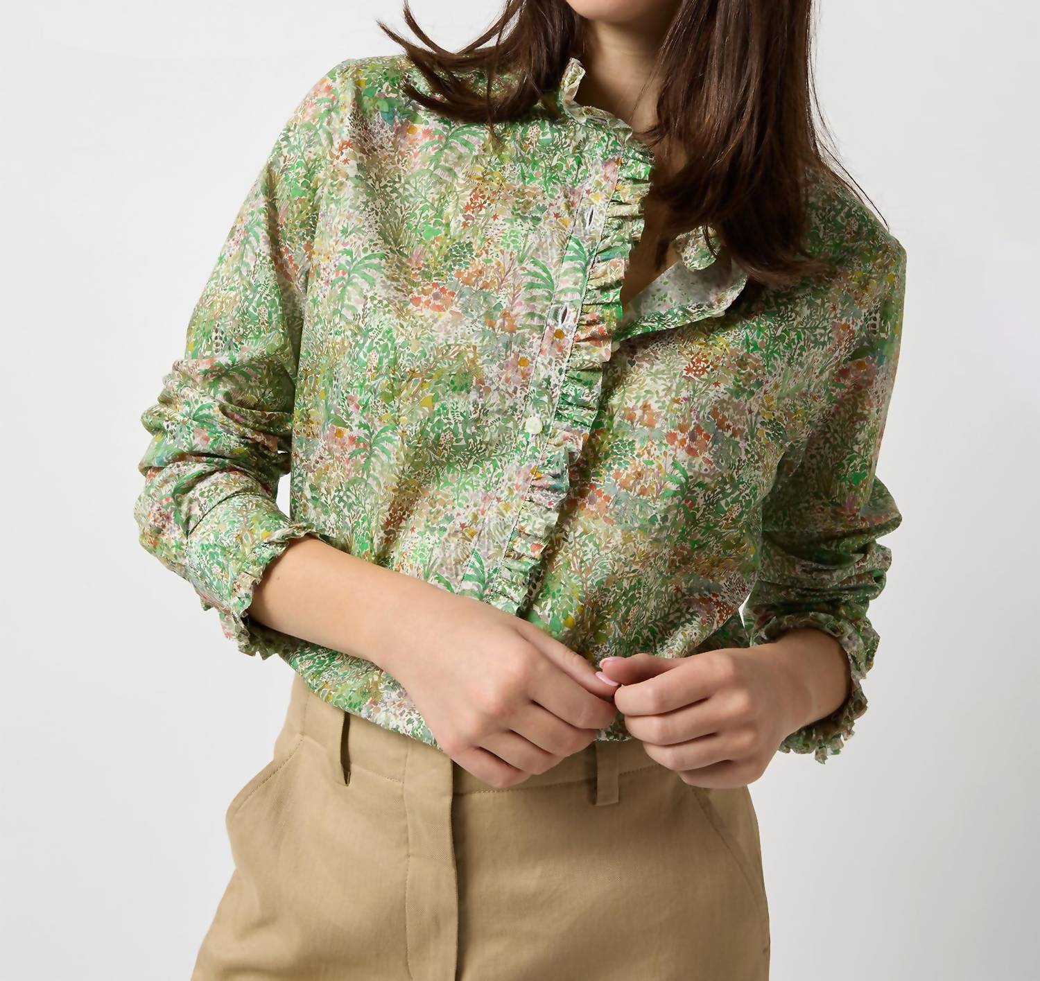 A long sleeve top you can wear with denim, skirts, well... just about anything! This feminine, elbow-sleeve take on the classic popover is crafted from our favorite Italian poplin, known for its crisp yet silky feel. Designed with a delicate frilled trim cut on the bias for a soft, raw-edged finish, it’s meant to develop a bit of fraying over time—adding to its charm. For best care, avoid machine drying.