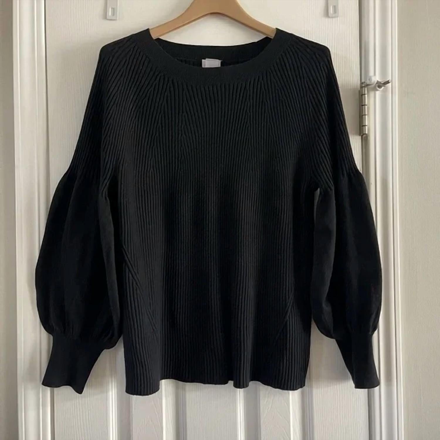 The ultimate go-to sweater, expertly crafted to provide the perfect combination of warmth and style. Its classic design and soft fabric make it a must-have addition to your wardrobe. Introducing the Rib Knit Blouse Sleeve Pullover by Chico's, a chic addition to your fall wardrobe in classic black. This pullover features a textured pattern and a crew neck, designed with long sleeves for a stylish look. Made from 59% recycled polyester, 30% acrylic, and 11% nylon, it offers a soft, lightweight feel with a length of 25 inches. Care instructions include machine wash and lay flat to dry, with a convenient pull-on closure for easy wear.