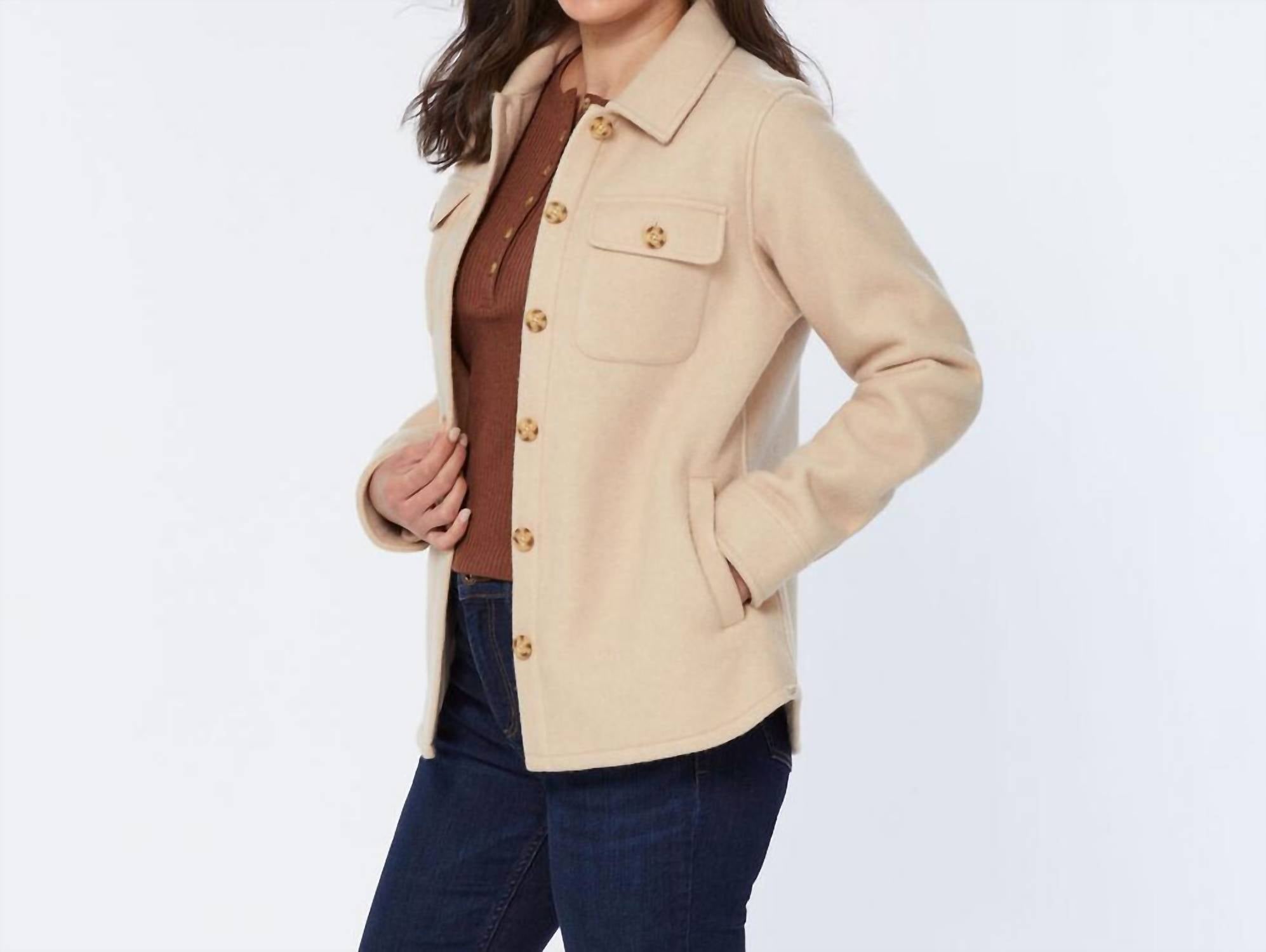 A casual yet cool jacket that every closset needs. Wrap yourself in the soft comfort of the Timberlodge Fleece Shirt Jacket by Duluth Trading Company, perfect for the fall season. Designed with long sleeves and crafted from a blend of 75% Polyester and 25% Acrylic, this oat-colored "shacket" offers durability and warmth. It features a classic collar and a convenient button-front closure, along with four practical pockets—two on the chest and two at the waist—for added functionality. Easy to care for, simply machine wash as needed for continued wear.