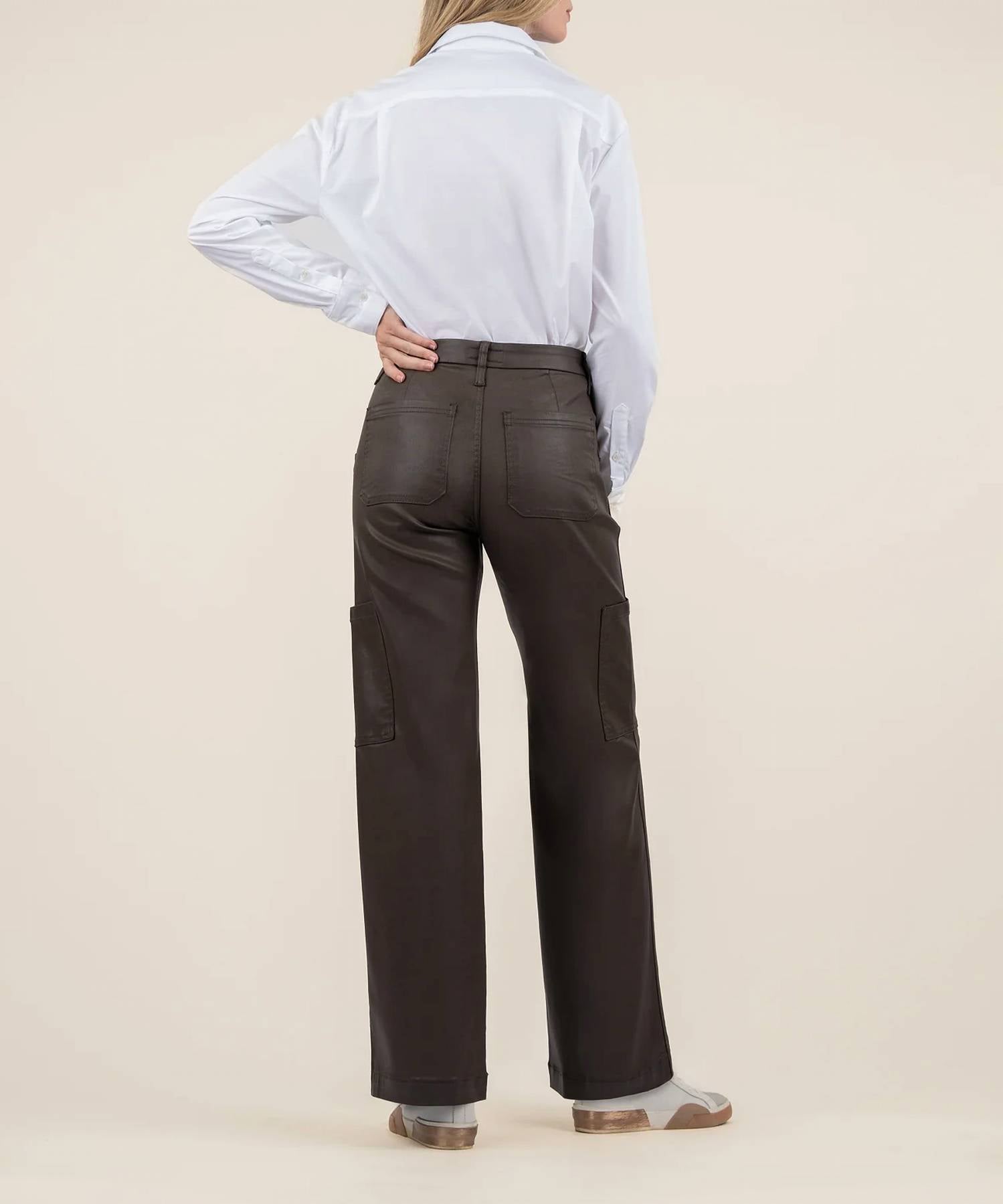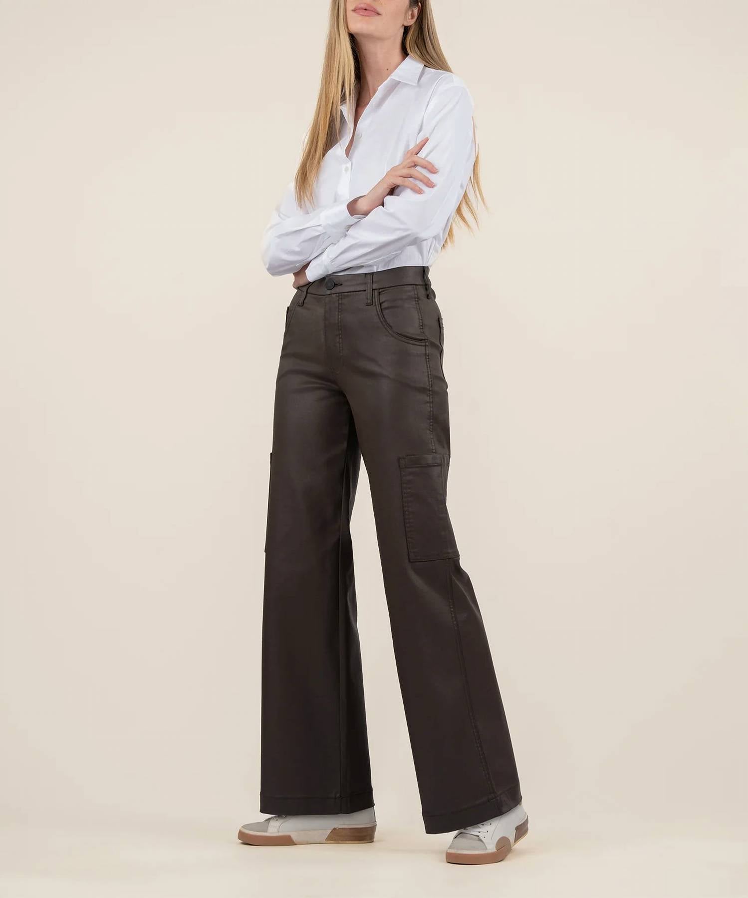 A flattering silhouette that's suprisingly versatile. Meet the Jodi Coated High Rise Pant by Kut from the Kloth, a sophisticated choice in seal brown that effortlessly blends style and comfort. Crafted from durable modal material, these pants feature a flattering wide-leg style, perfect for elevating your wardrobe. The high-rise waist ensures a sleek silhouette, while the button closure adds a touch of classic detail. With practical pockets, these pants are easy to care for with machine wash and tumble dry instructions.