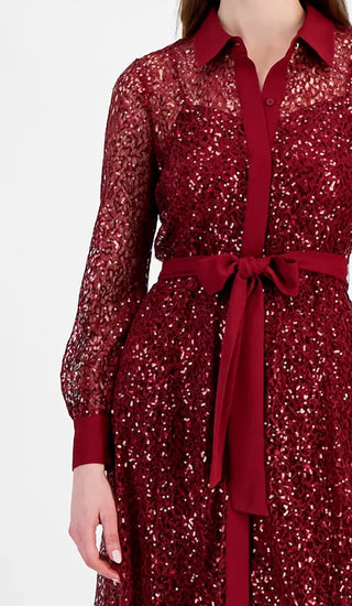 Anne Klein - Button-front Tie-waist Cabernet Dress