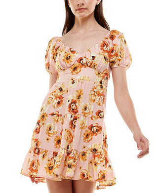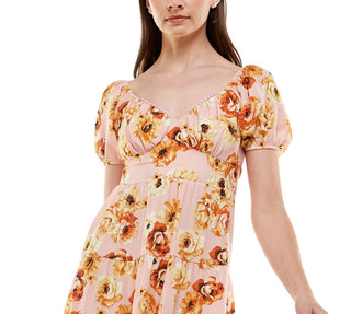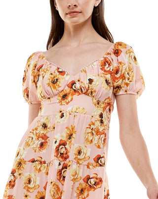 Almost Famous Women's Floral Cap Sleeve V Neck Short Sheath Dress Red Size 2X