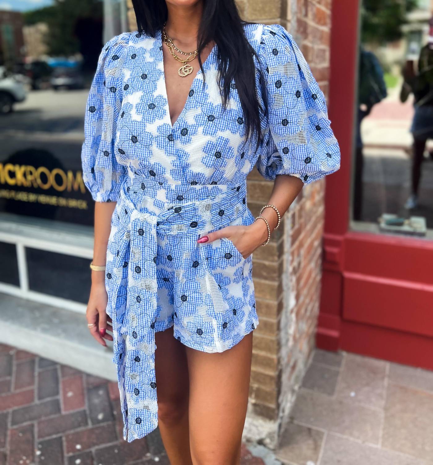 It doesn't take much for this one piece to look effortlessly cool. Add some statement jewelry to dress it up, or throw on some sneakers for a more casual vibe. Meet the Julia Romper by BUDDYLOVE, an essential for your spring and summer wardrobe in a charming Julia Blue floral pattern. This versatile piece features relaxed puff sleeves with elastic at the elbow and a flattering mid-thigh length. Designed with a button closure and an elastic waist complete with a tie for added detail, this classic fit romper suits a wide range of body types. Made with fabric that contains no stretch, it requires machine wash care and should be laid flat to dry.