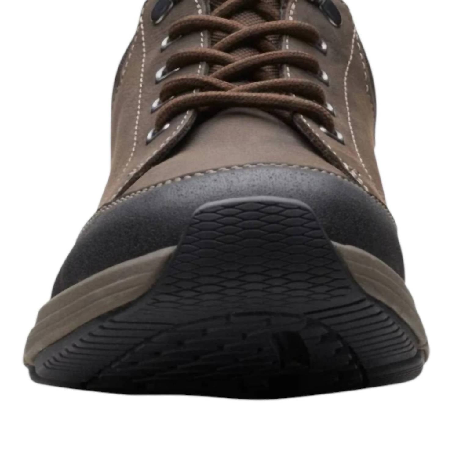 These dark brown sneakers blend comfort and style, featuring a waterproof lace-up design with an oily leather and textile upper. The rubber outsole, removable OrthoLite® footbed, and breathable leather sockliner enhance comfort. To keep them in top shape, simply wipe with a dry cloth and let them air dry if wet.