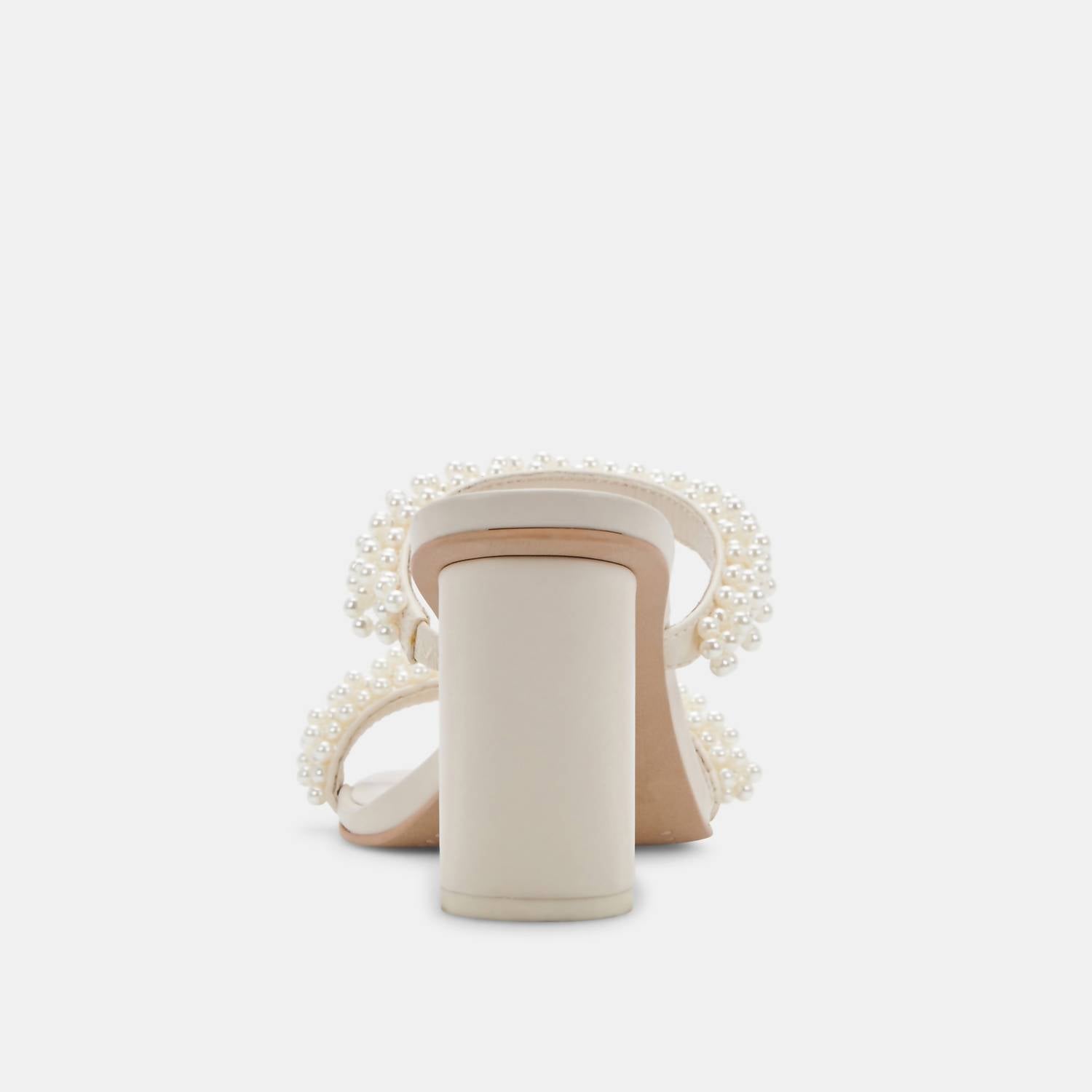 The perfect height for day to night. Studded with pearl bead accents. Synthetic Upper. Rubber Outsole. Leather + Synthetic Lining. 3.4" Heel Height