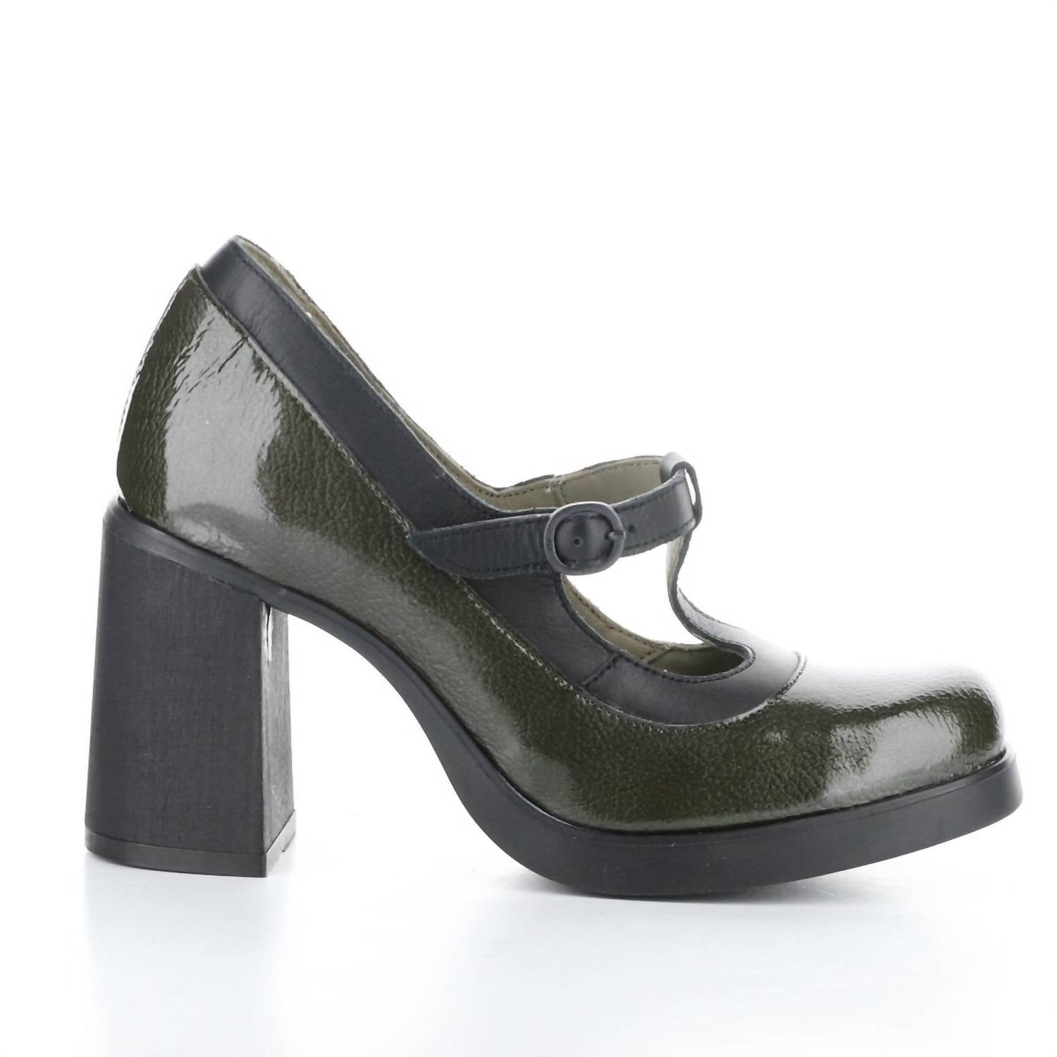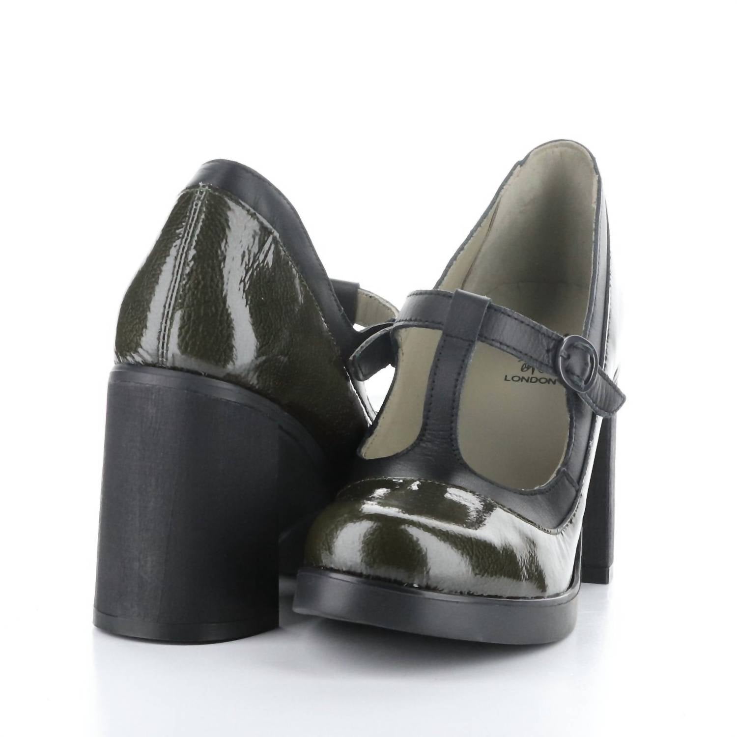 Don't be deceived, these heels are comfy as can be. Step into style with the Women's Seif T-strap Pump by FLY LONDON, a chic choice in Military Black. Crafted from luxurious leather, these pumps are lofted on a high 3.75" block heel and feature a 3/4" platform for added comfort. Made in Portugal, they boast a round toe and a medium shoe width, with an adjustable strap and buckle closure to ensure the perfect fit.