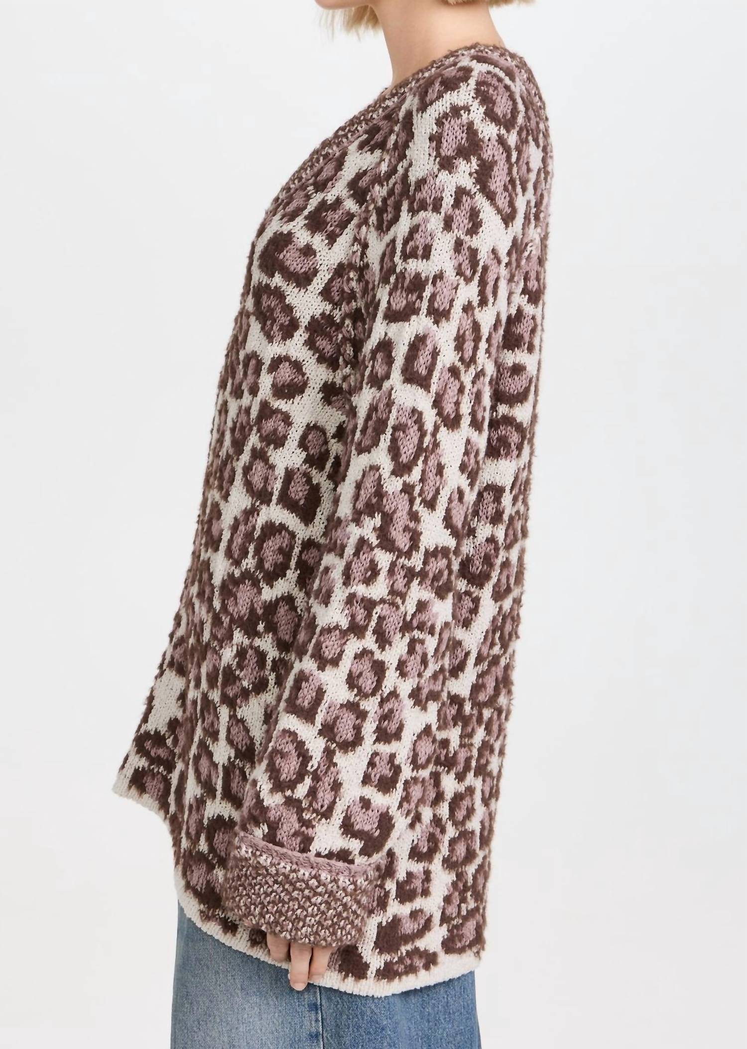 Mid-weight knit. Leopard pattern. V neck. Long sleeves. Shell: 52% cotton, 19% polyamide, 17% acrylic, 12% polyester. Hand wash. Imported. Measurements from size XS: Length: 25.5 in / 65.0 cm, from shoulder.