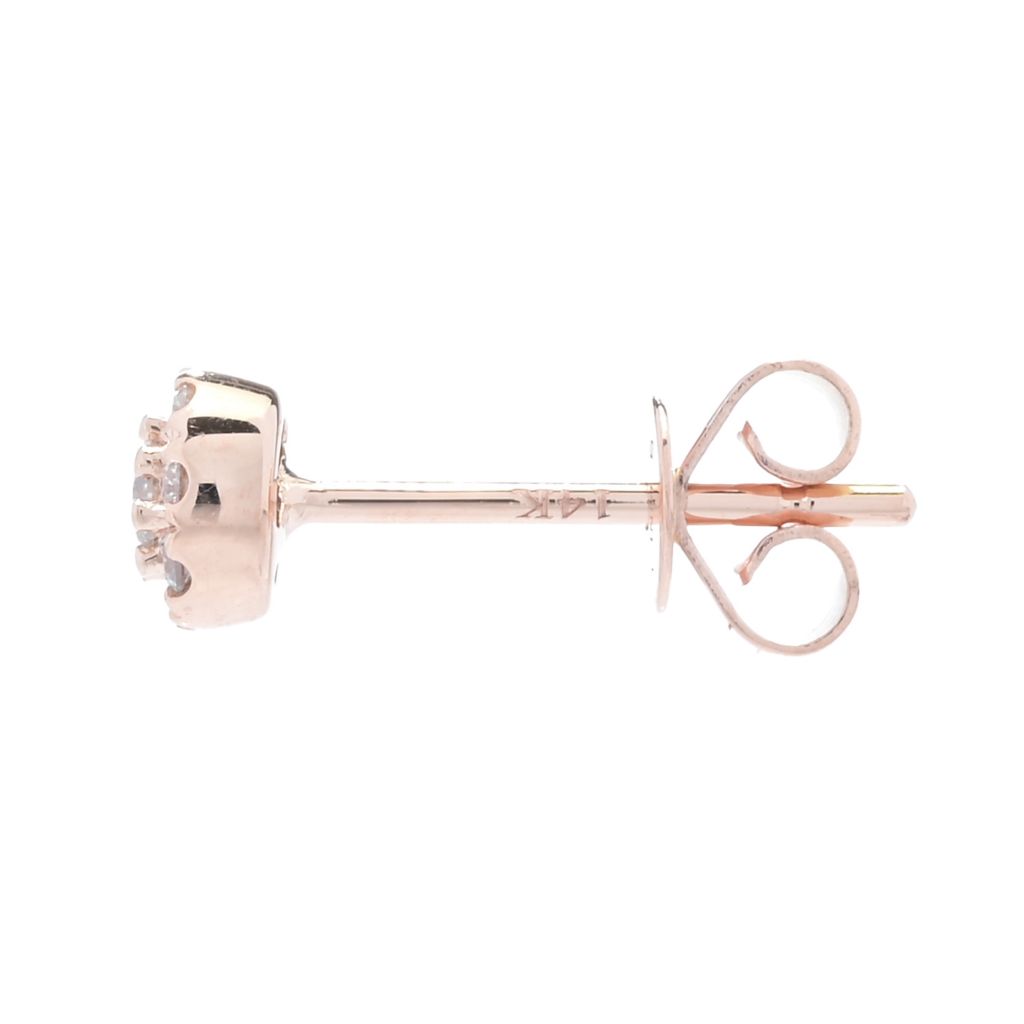• Stone Information: Adorned with dazzling diamonds, these earrings feature two round, brilliant-cut diamonds totaling 0.045 carats and sixteen additional round, brilliant-cut diamonds totaling 0.006 carats each, culminating in an approximate total carat weight of 0.186 carats.